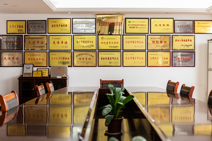 “明邦”商標(biāo)被認(rèn)定為“湖北省著名商標(biāo)”,同時(shí)被評(píng)定為“湖北名牌”產(chǎn)品,企業(yè)同時(shí)被評(píng)定為“湖北省重合同守信用企業(yè)”、“湖北省新型墻材產(chǎn)業(yè)化示范基地”和“荊門市循環(huán)經(jīng)濟(jì)示范企業(yè)”,公司通過(guò)了“綠色建材評(píng)價(jià)標(biāo)識(shí)證書(shū)”、“GB/T 45001-2020職業(yè)健康安全管理體系認(rèn)證證書(shū)”、“GB/T 19001-2016質(zhì)量管理體系認(rèn)證”、“GB/T 24001-2016環(huán)境管理體系認(rèn)證證書(shū)”。